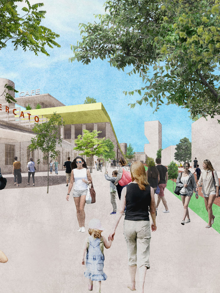 The 22 hectare site is a former industrial railway yard within Porta Romana, a large fragmented district surrounding a former 16th century city gate and located in the southern part of Milan. Our proposal envisioned a dramatic new green park running along the railway line, serving as a social hub and regenerative ecological amplifier. Threading the area together are a series of diagonal streets, green corridors, public plazas and activated ground floors, promoting social interaction and urban biodiversity.